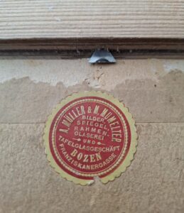 Alter Holzrahmen vom Ho&Ruck gemalt auf Marmormehl, mit Farbe u. Bleistift. B: 76 cm H: 62 cm Feb. 2025