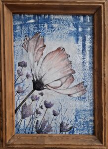 Alter Vollholzrahmen vom Flohmarkt auf Karton und Papier gemalt mit Acryl und Bleistift.